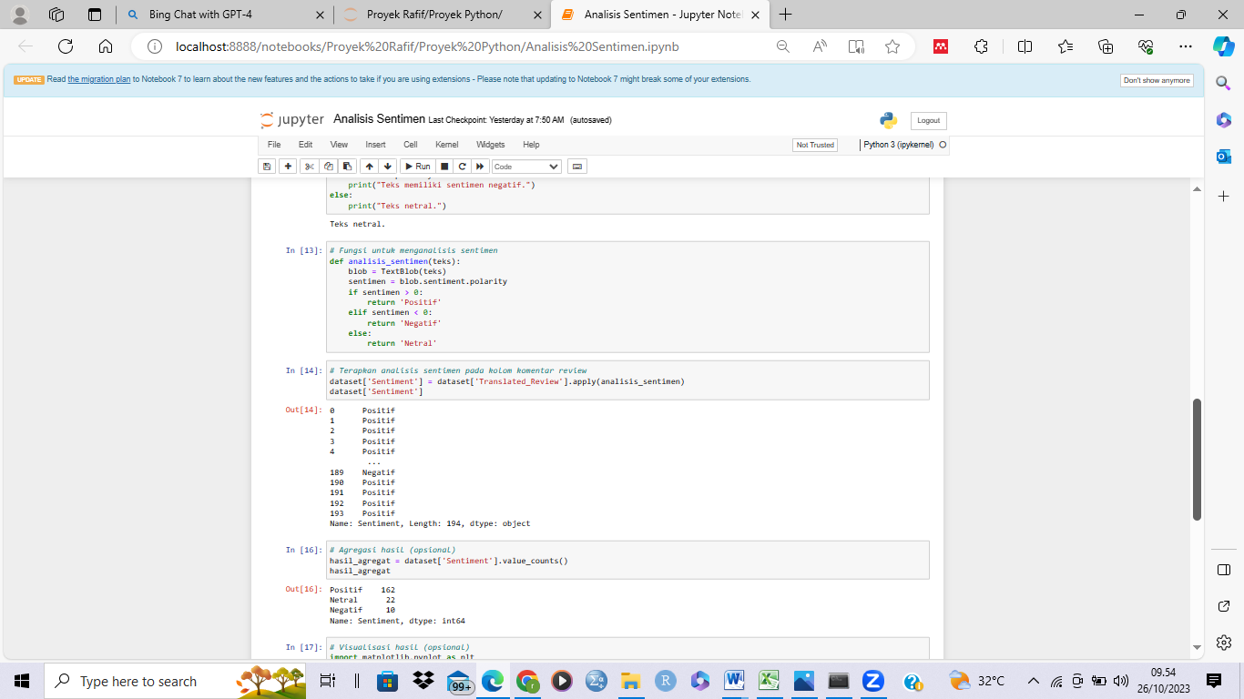 Sentiment Analysis Function and Agregation Result